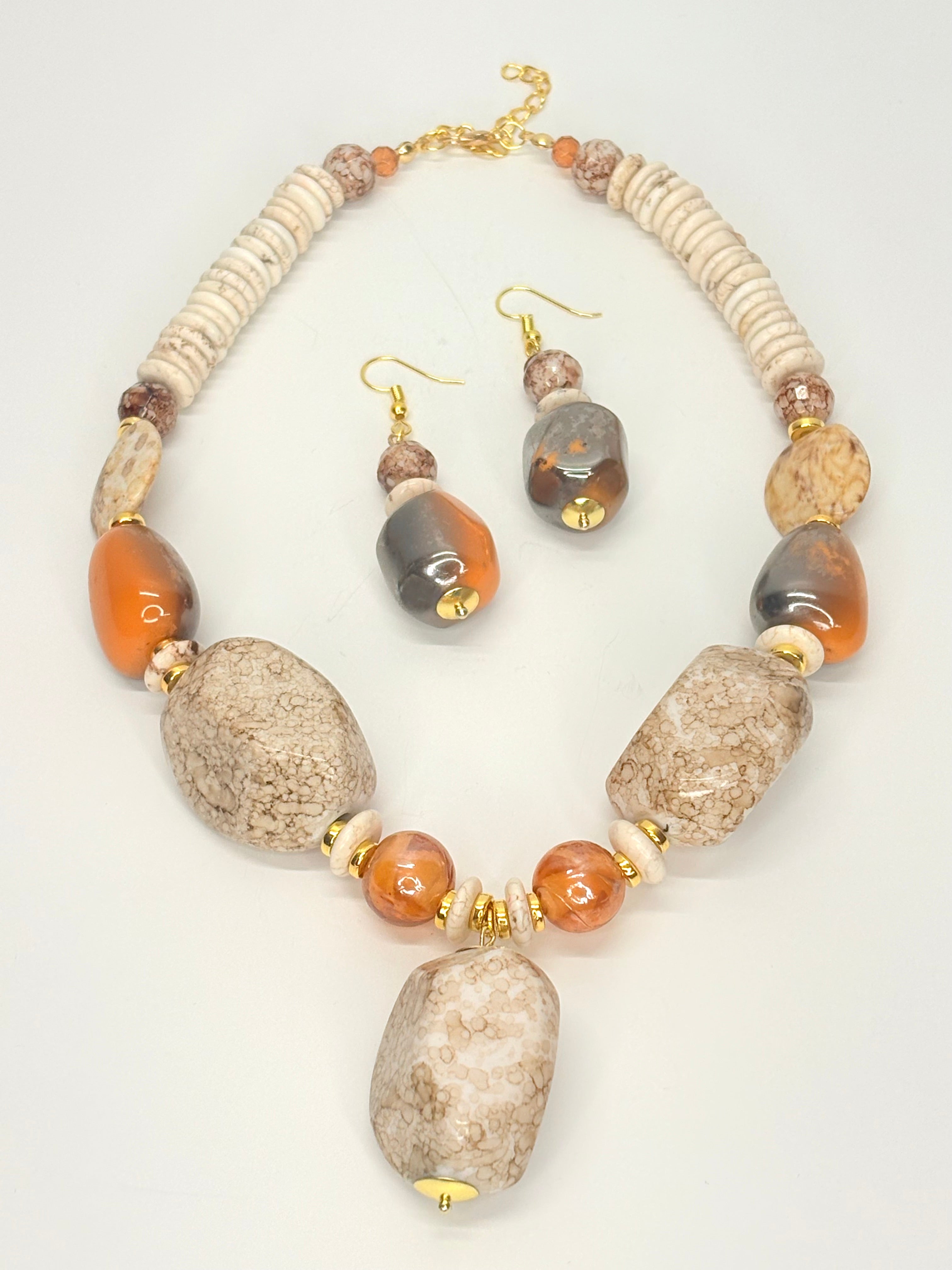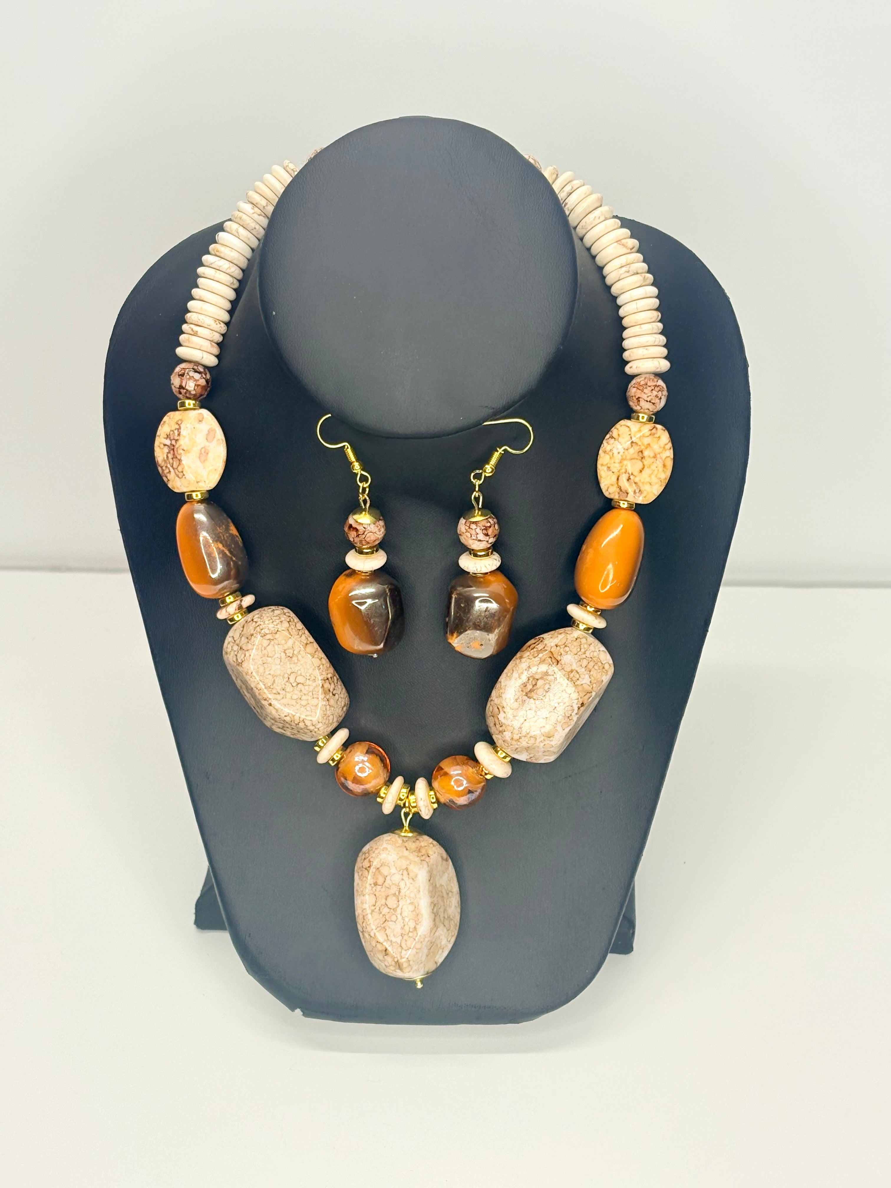 Make a bold and graceful statement with our handcrafted Desert Grace Statement Jewelry Set. Designed with high-quality imitation stone beads in warm earth tones and elegant gold accents, this set brings together style, confidence, and timeless beauty.